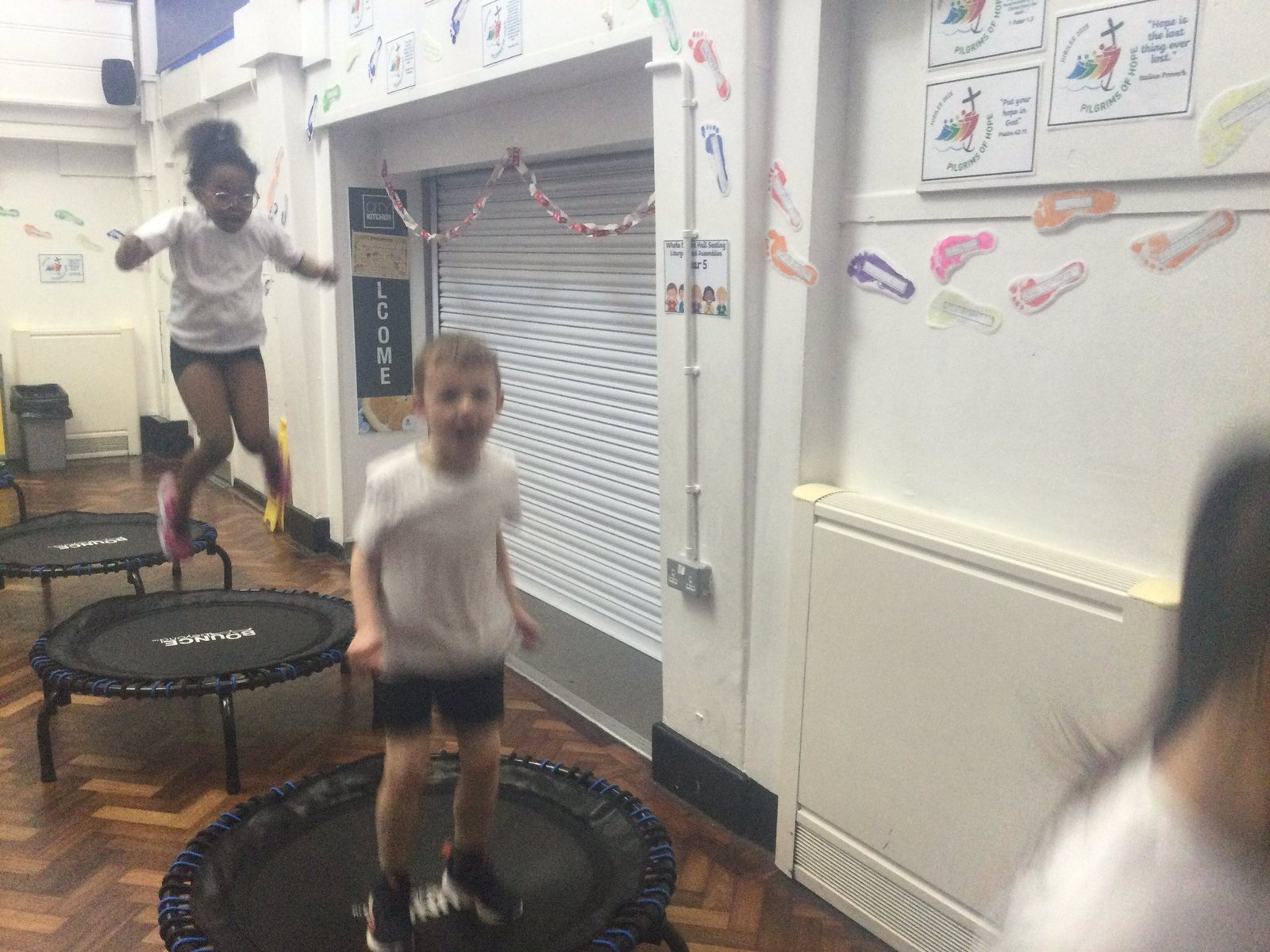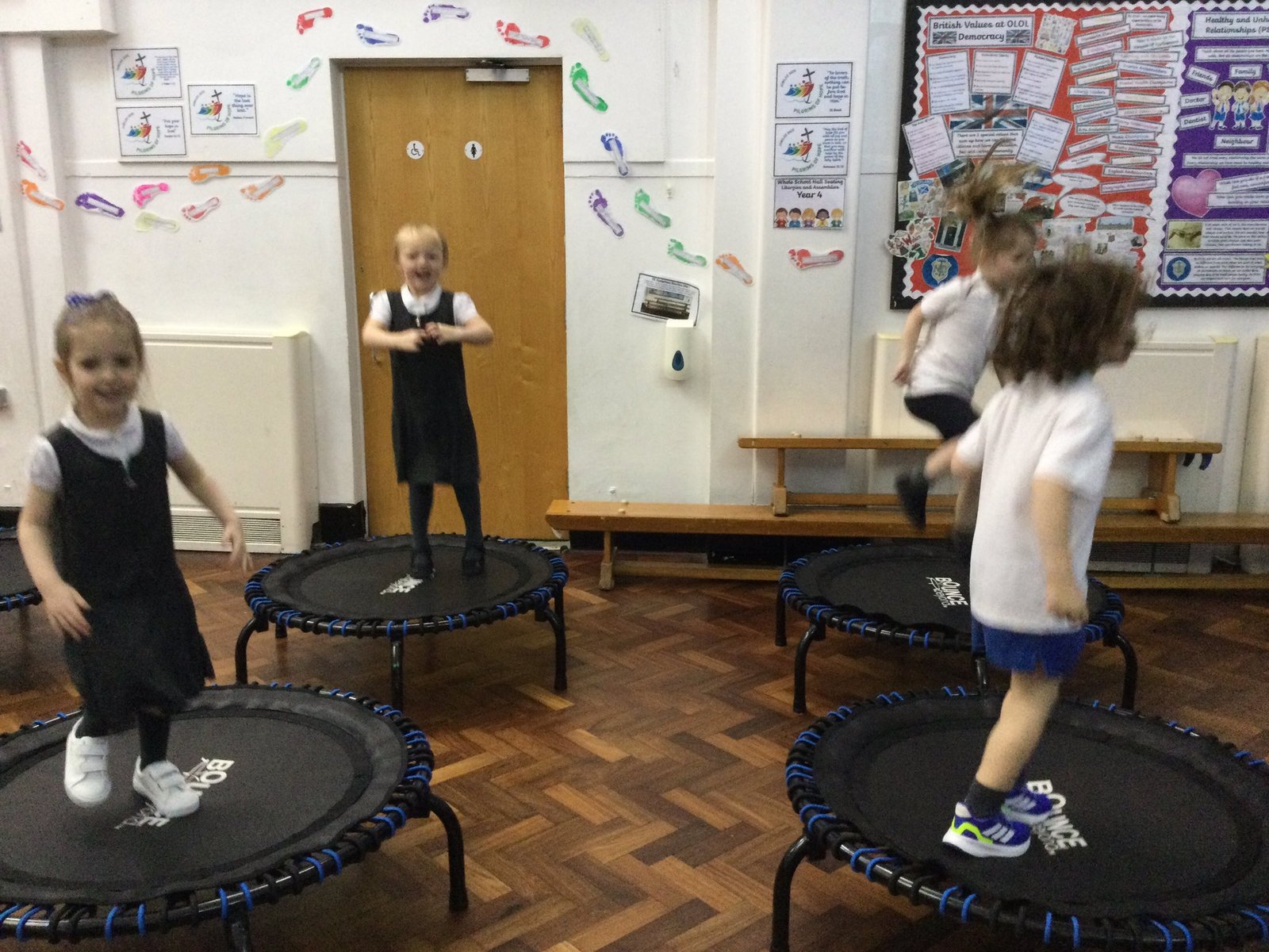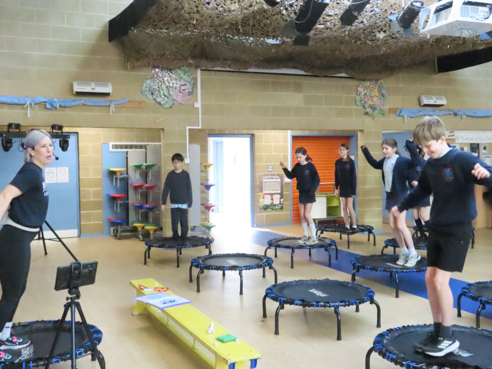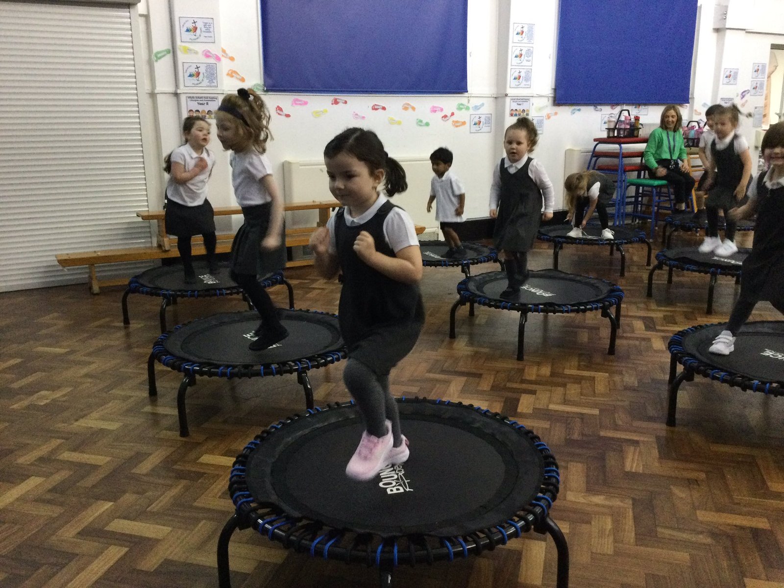 Each child has their own mini-trampoline/rebounder for the duration of the session! Everyone is bouncing together, getting active, having fun and combining elements of Numeracy and Literacy.