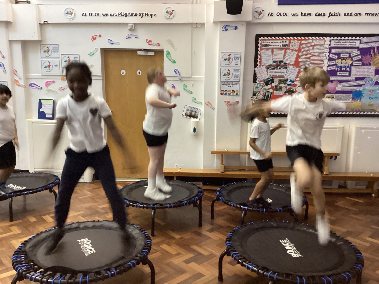 We organise a whole day of bounce workshops engaging children using our Bounce Beyond routines, games and challenges set to expertly mixed music-specifically designed and tailored to each age group starting from Nursery 4+ up to Year 6.