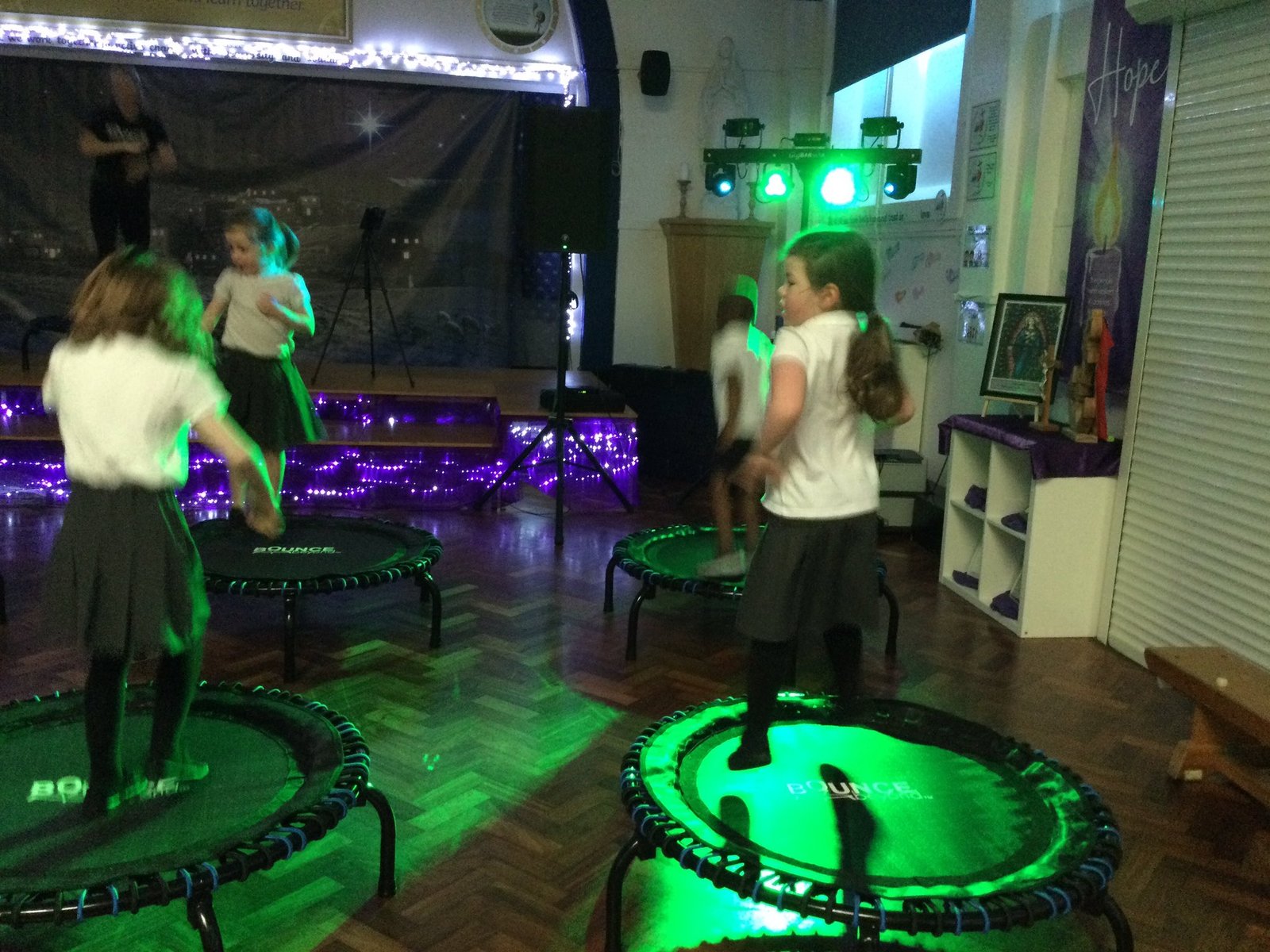 Bounce Beyond provides mobile academic high energy school bounce workshops across England. We come to your school with enough mini-trampolines for every child in class, a full disco lighting rig with lasers and effects and a professional sound system!